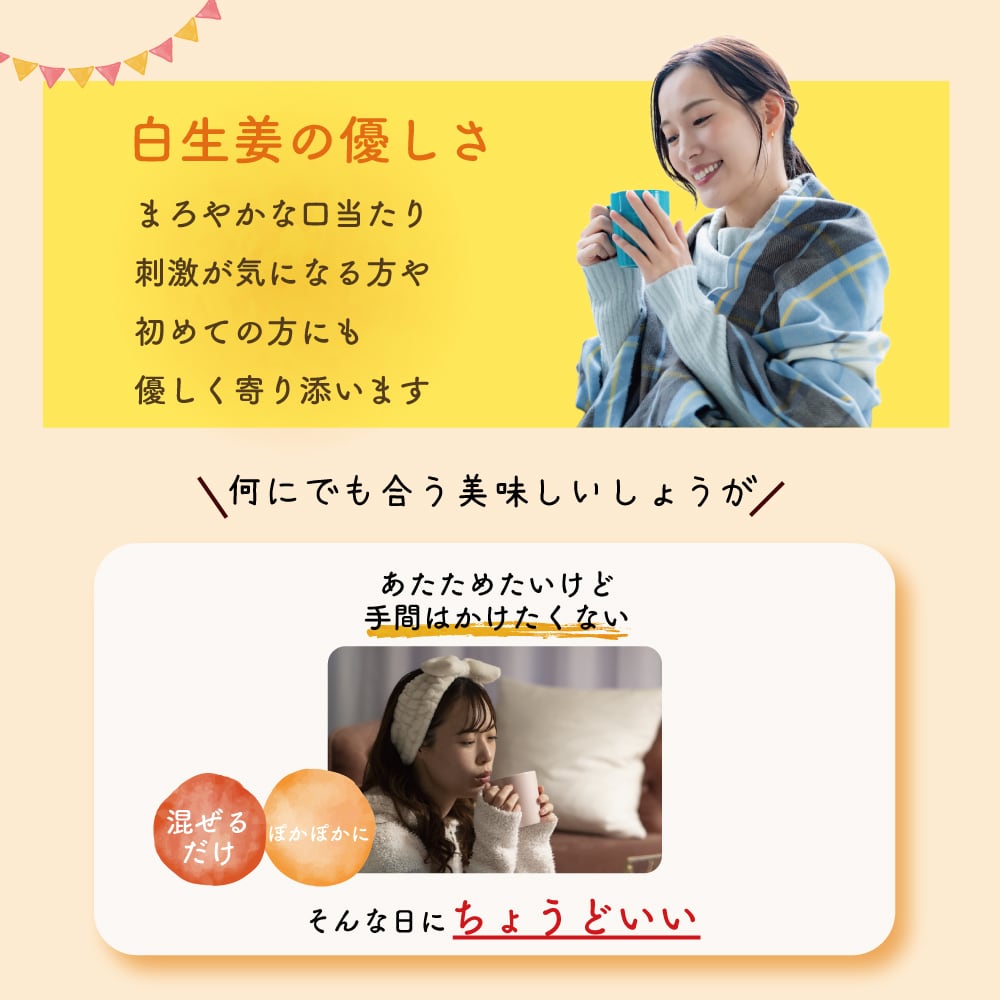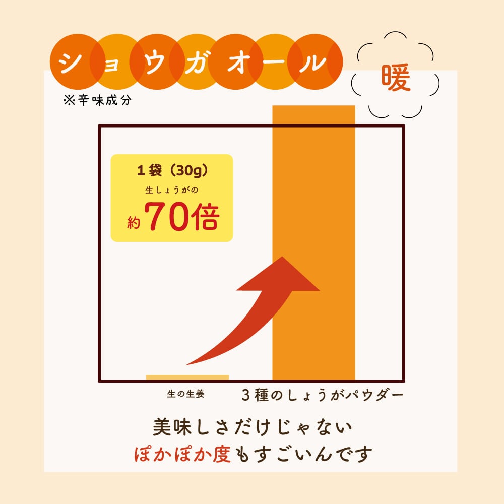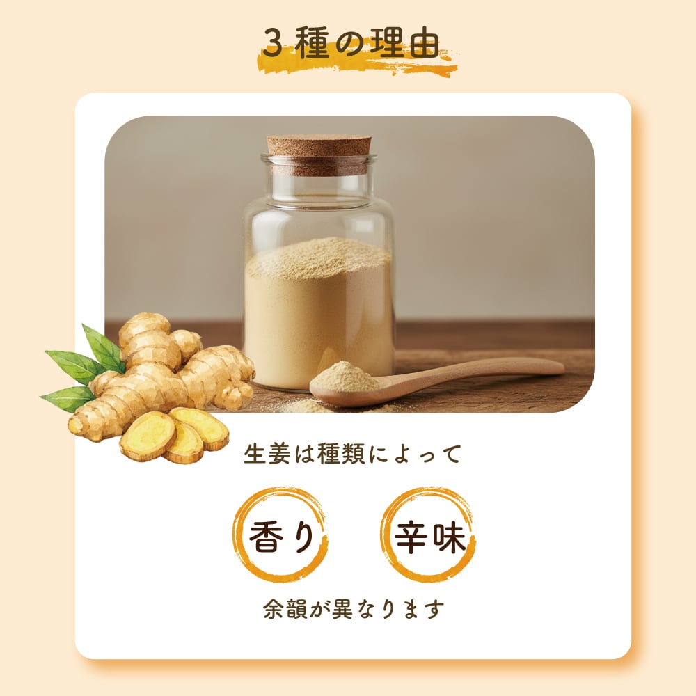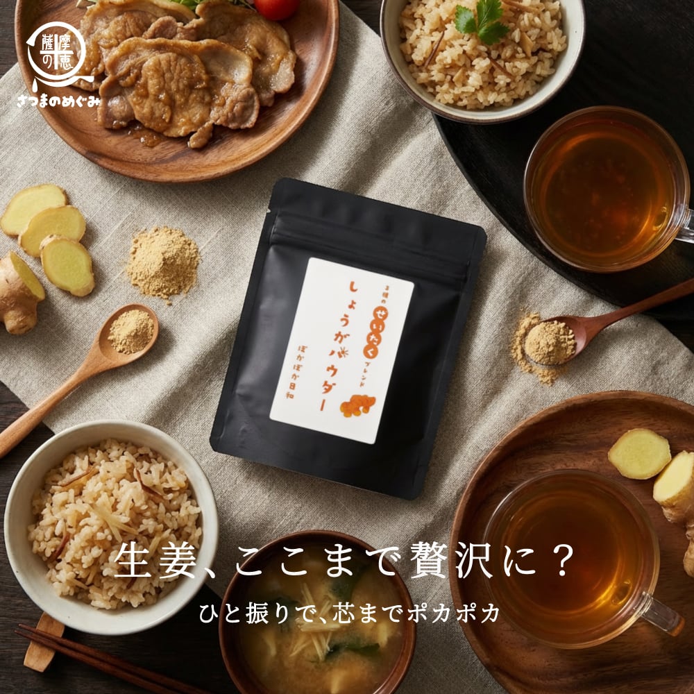 お料理やドリンクに贅沢な風味を加える、3種のぜいたくブレンドしょうがパウダーが登場!厳選された国産のしょうがを使用し、香り豊かで使いやすいパウダータイプに仕上げました。毎日の食卓やホットドリンクに、ぜひお試しください。